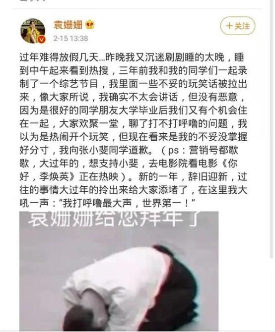 事后袁姗姗发文表示歉意,但是她的低情商简直是没救了