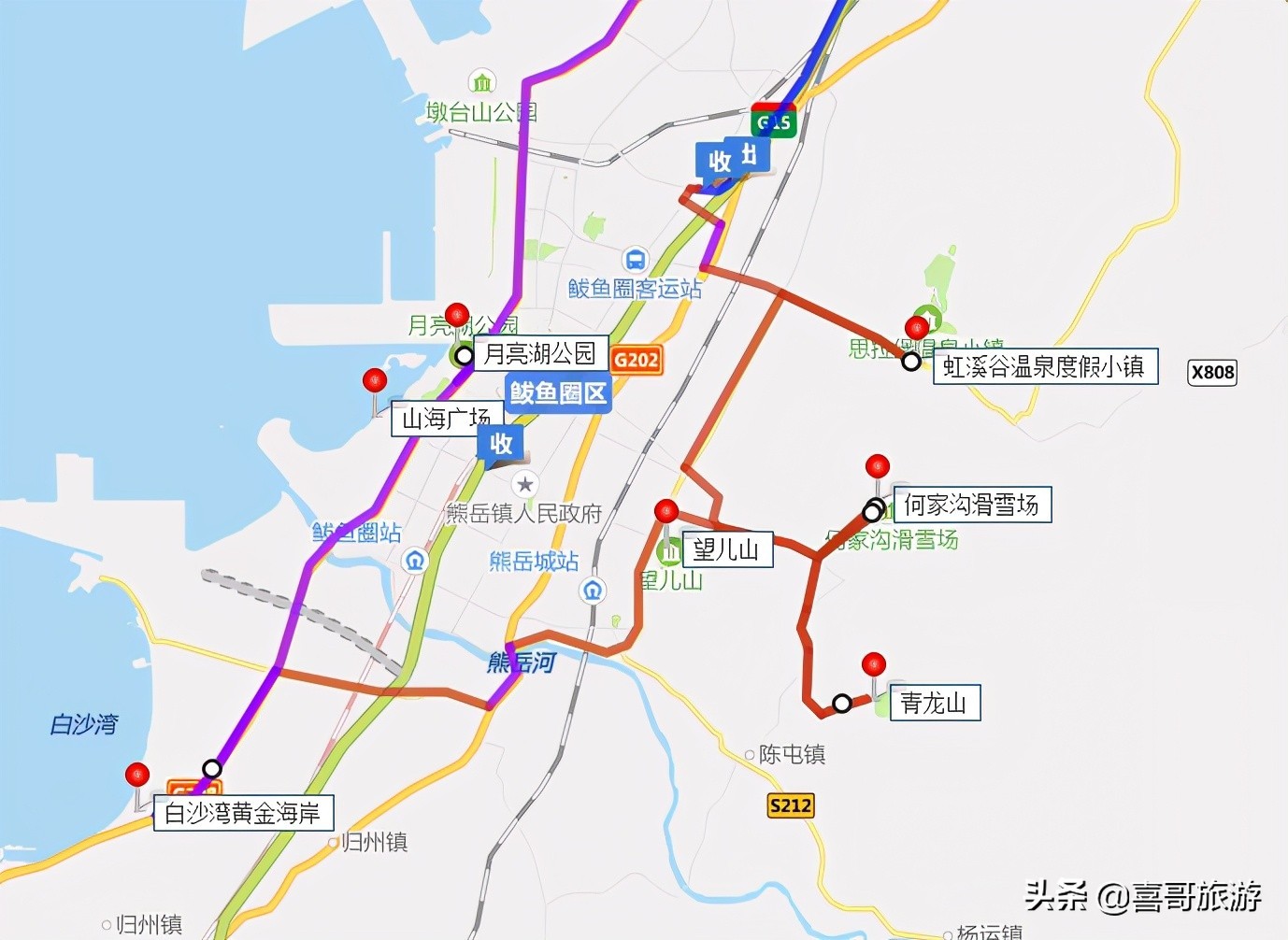 营口熊岳望儿山自驾至白沙湾黄金海岸交通路线:营口熊岳望儿山-望儿山大街-202国道-南仙线-丹东线-白沙湾黄金海岸。全长18.6公里,车程26分钟。