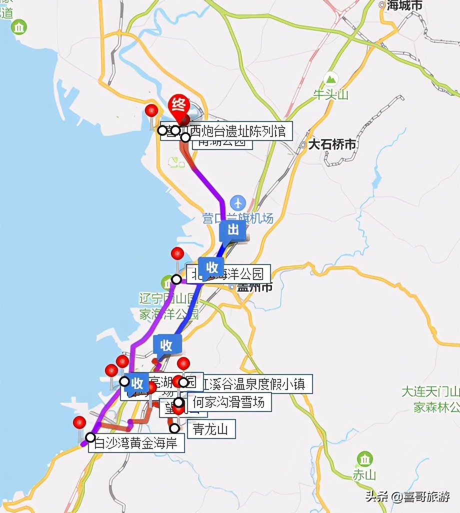 2、辽宁省营口市十大景点自驾游行程路线:营口-营口西炮台遗址陈列馆-南湖公园-虹溪谷温泉度假小镇-何家沟滑雪场-青龙山-营口熊岳望儿山-白沙湾黄金海岸-山海广场-月亮湖公园-营口北海海洋公园-营口。