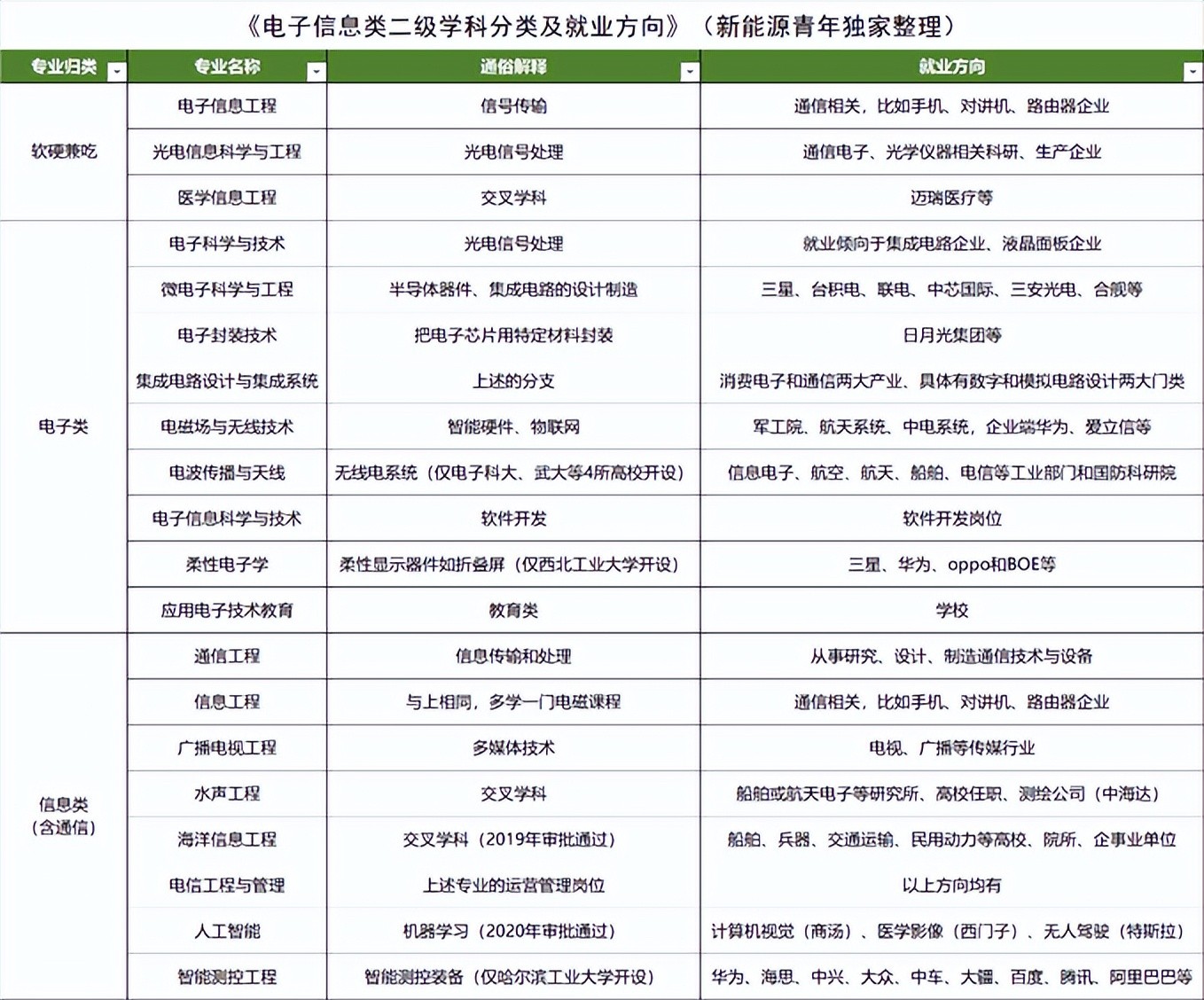 吃软的还是硬的?电子信息类20个专业就业,报前必看