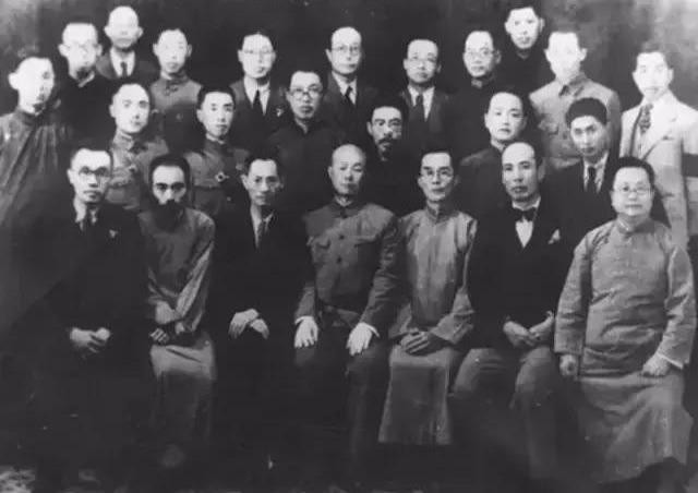 1941年清华大学校庆时领导合影。右起:叶企孙,冯友兰,吴有训,梅贻琦,陈岱孙,潘光旦,施家炀。