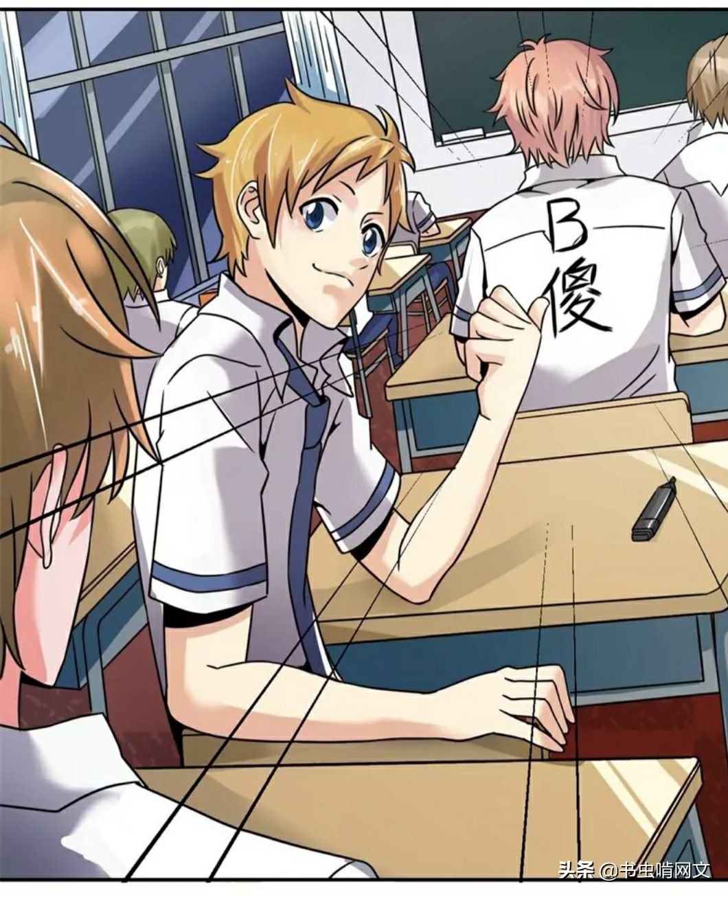 果然没过多久,花千树就遭到了报复,她的书本被扯烂。不甘受欺凌的她决定反击,她将矛头对准了男生们的头目李哲瀚,她将自己的课桌与李哲瀚的课桌进行调换,并在李哲翰的课本上画满了翔。