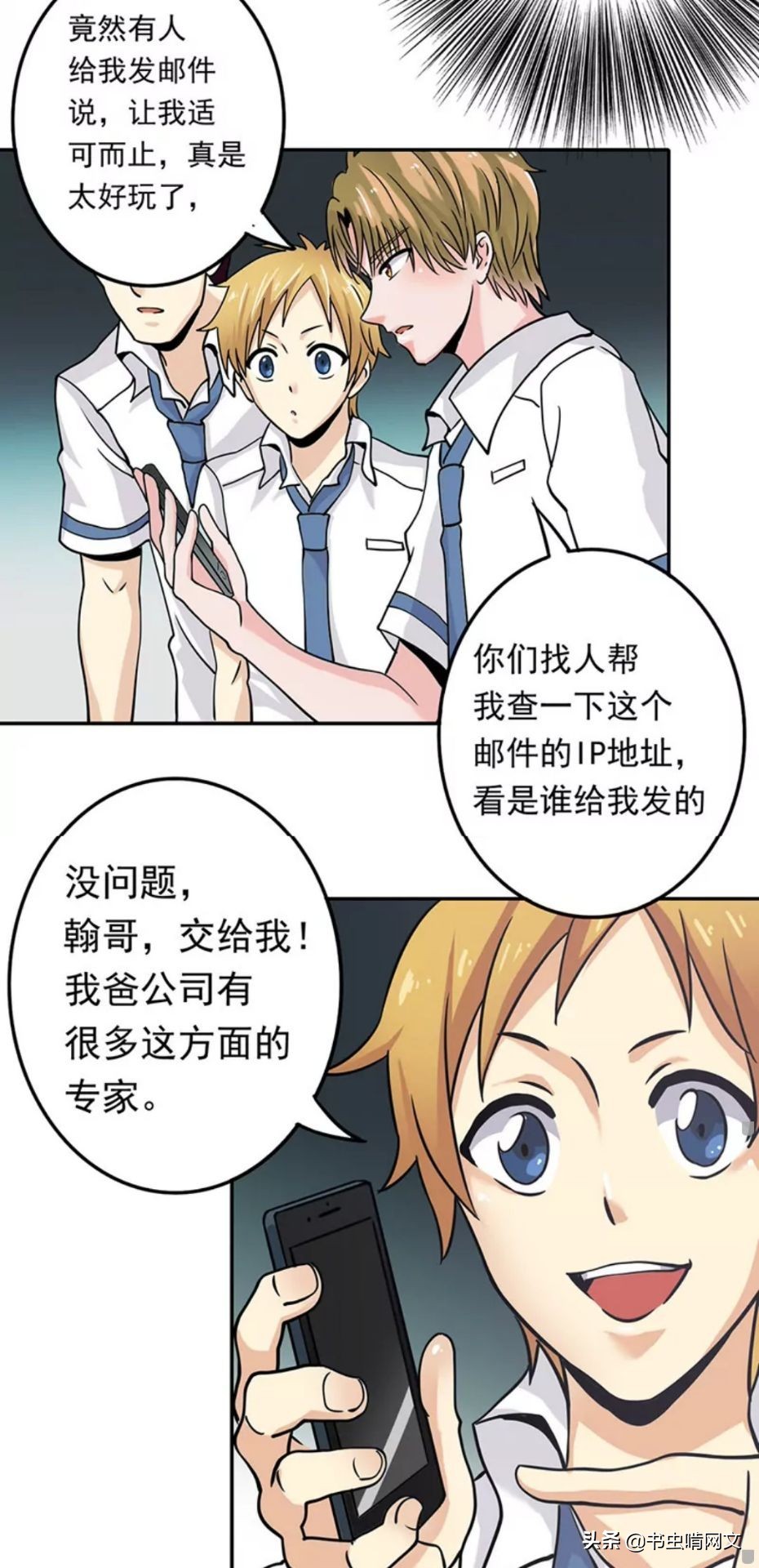 于是花千树用手机录下了李哲瀚等人欺负同学的视频,准备向老师举报他们的罪行。