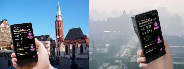 左:法拉克福PM2.5为1微克每立方