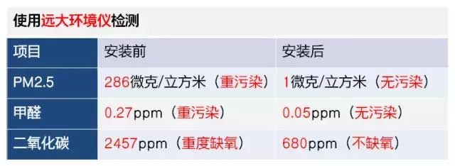 (新风机安装后室内空气质量检测数据)
