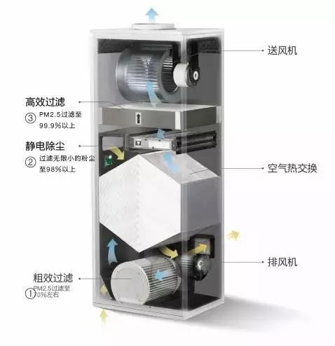 具有新风换气、除尘灭菌、空气过滤、新风热回收四大功能,使得人们能在清新环境工作学习、休闲娱乐。