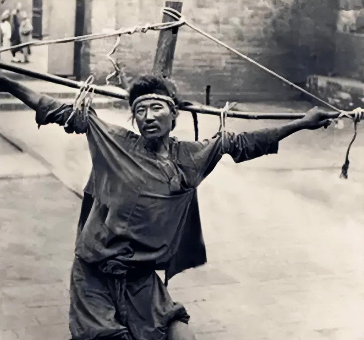 04 一名囚犯正被绑在木桩上受刑,看得出他非常痛苦