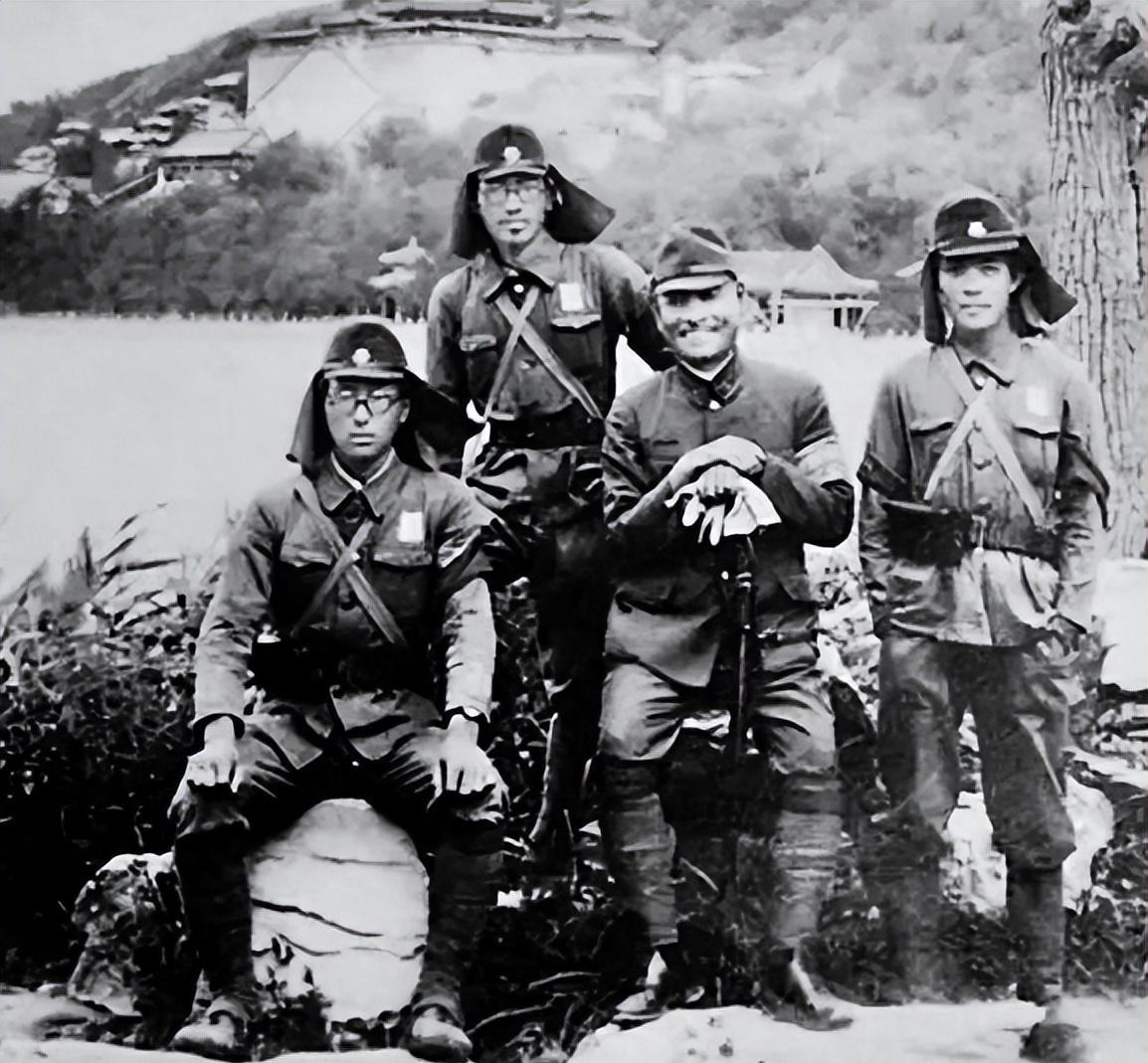 10 四个侵华日军,三个士兵和一个长官。可以说:这群侵华日军,毫无羞耻之心!侵略他国,居然还在这里拍照,还以这样无无耻的方式为荣!