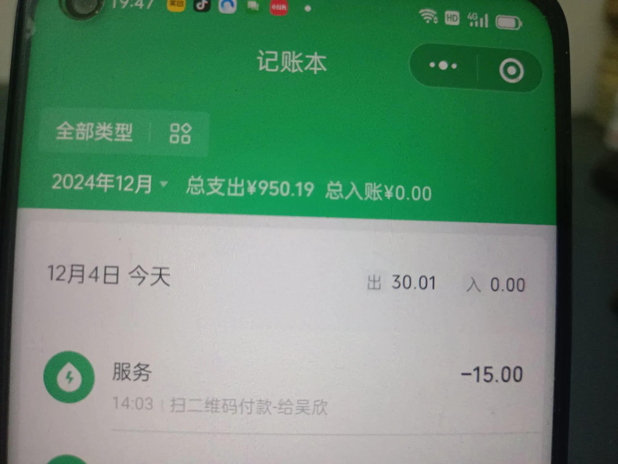 这时候可以看到我在2024年12月4日14:03分,通过扫二维码付款了一笔15的账单,现在我将其删除掉。(如上图所示)