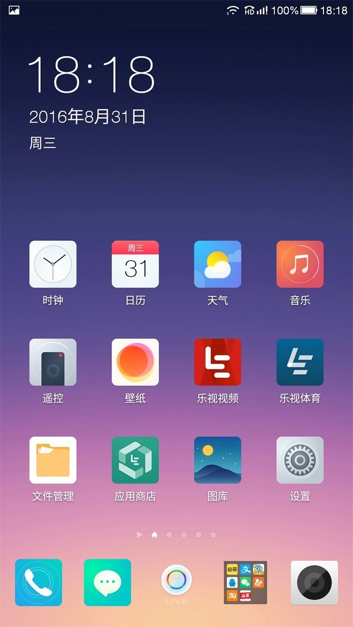 主界面来回滑动非常流畅,EUI系统的优化还是相当不错的。图标用的是扁平化设计。