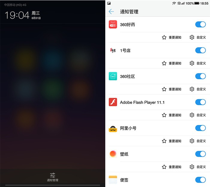 乐视EUI的通知栏可以通过手指下拉实现,还可以自由设置通知管理。