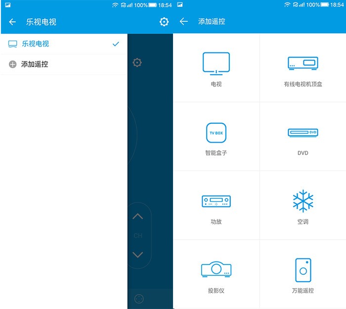 非乐视的产品可以选择“其他设备”,软件里提供了主流的品牌也有万能遥控器功能。