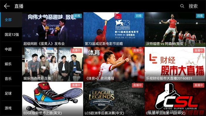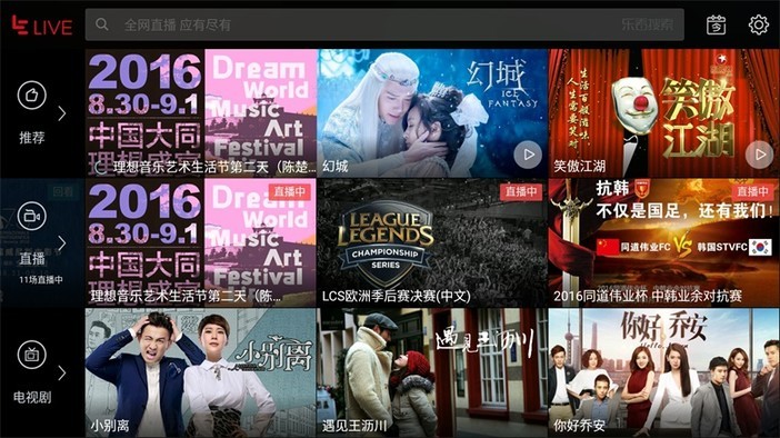 点击屏幕下方中间的图标进入乐视LIVE桌面,LIVE桌面采用 “直播+轮播+点播”的方式。