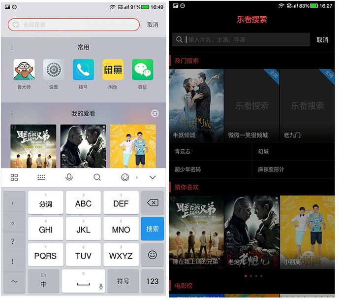 长按Home键可以进入“万象搜索”,其打通了本地与全网搜索,基本上用户想要的在这里都能找到。