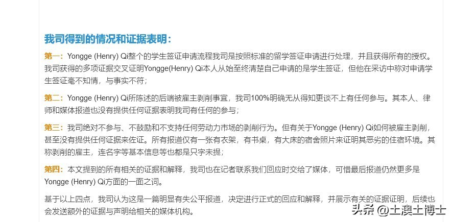 1. 如果说中介和雇主并无任何关系,只是负责签证办理,那只需要证明自己是按照正规程序申请签证就好了,为什么还要扯上雇主的事情,反过来质疑澳媒,看上去像是在帮雇主说话?