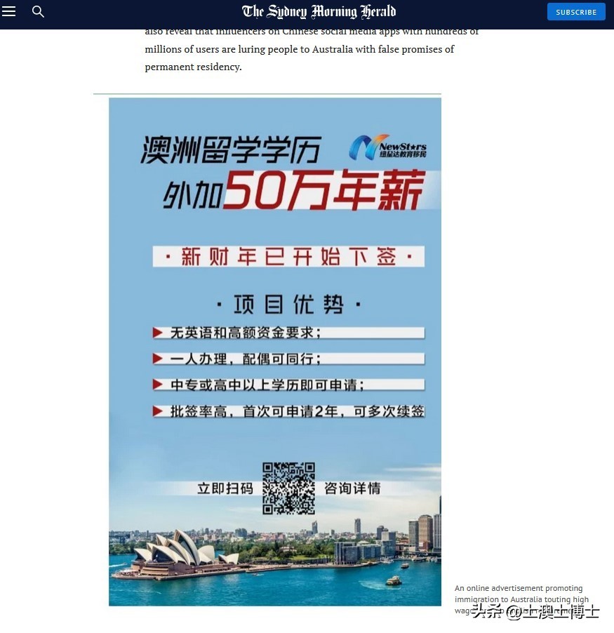 那么纽星达中介是怎么骗到人的呢?请看下面这图,被澳媒截到的广告。