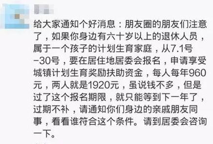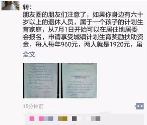 近日,微信朋友圈里面流传着一则消息称,今年7月1日以后,独生子女证就不办了,没办的赶紧办,并且还可以申请享受城镇计划生育奖励扶助资金每人每年960块钱等等。此消息是否属实?为此,记者专门来到德阳市卫计委了解相关情况。