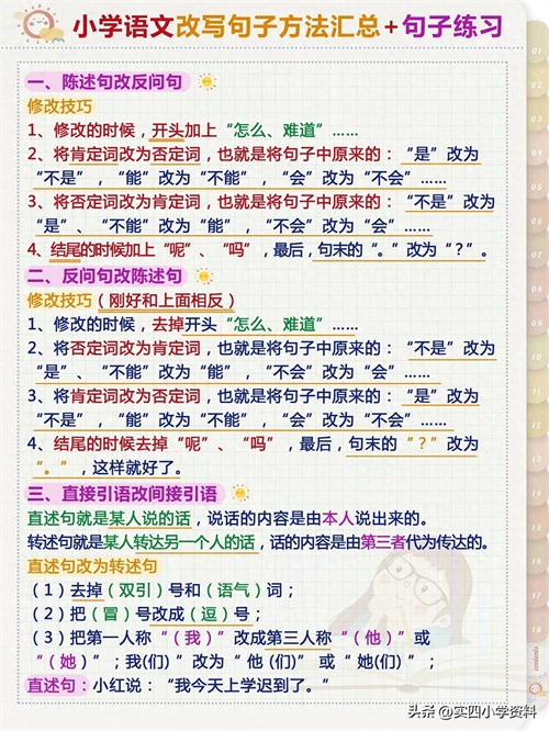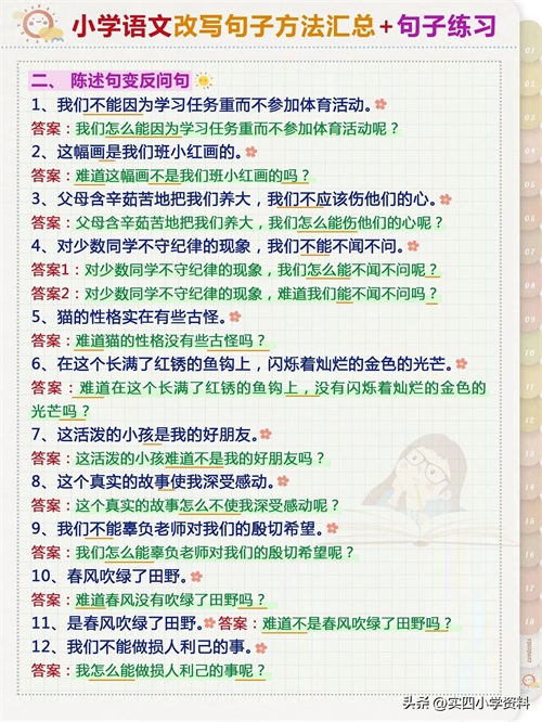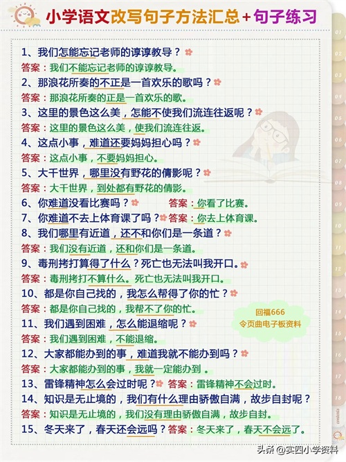 陈述句改反问句的专项练习!学会不丢分!加油呀!!!