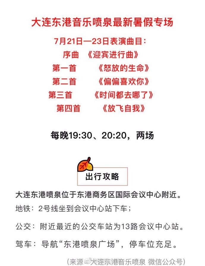 全市中小学已全面开启暑假模式,东港音乐喷泉每天2场,时间分别是19:00—19:20、20:00—20:20,但随着学生假期的到来,届时到东港的大连本地及外地游客将接踵而至,为保证在音乐喷泉表演时间段客流的及时疏散,从即日起,市公交集团汽车五分公司13路公交车将于国际会议中心站点设置东港音乐喷泉直通车,预计平日配车5班,周末期间增加至8-10班,日均疏散客流1000余人次。