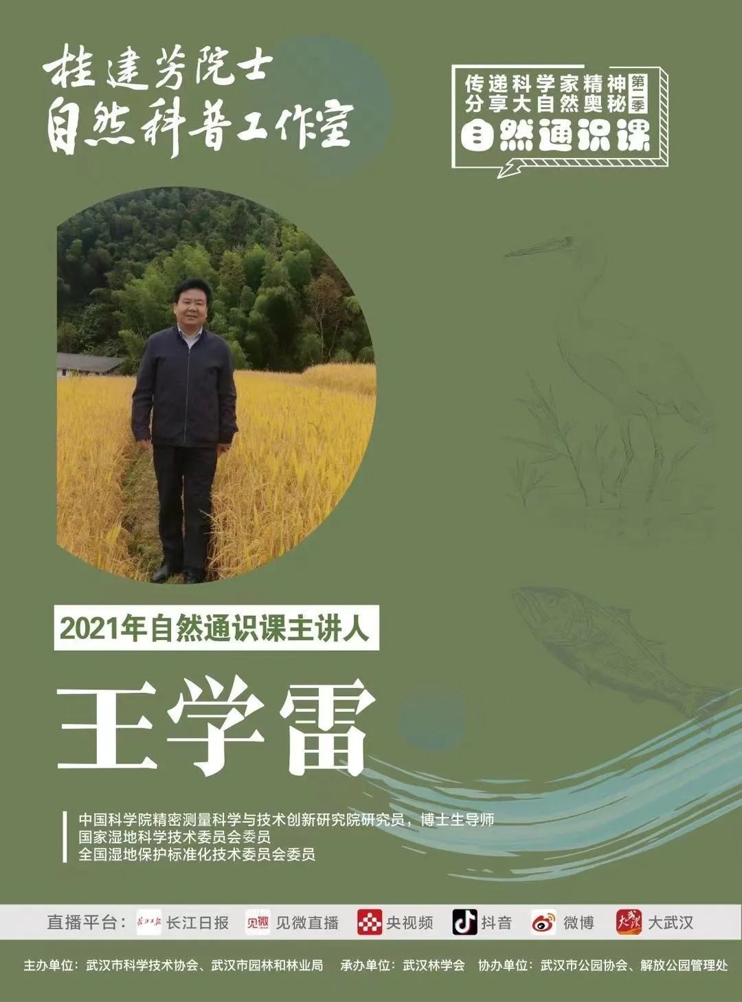 2021年4月-2022年1月,10位自然科学大咖将在这里,主要围绕长江大保护主题,深度解析“湿地花城”名片,传递科学家精神,分享大自然奥秘。