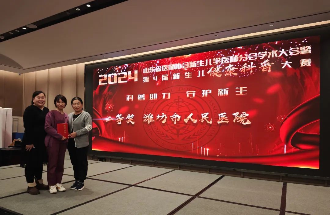 近日,新生儿科谢菲、刘欣、韩丽娜在山东省医师协会新生儿学医师分会2024年“科普助力、守护新生” 科普大赛中,获得二等奖。