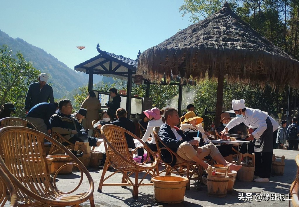 大滚锅旁边,有一个硕大的蒸笼,进景区时买的生鸡蛋和咸鸭蛋,就是在这儿体验。将草裹着的鸡蛋放进大蒸锅,盖上斗笠似地锅盖,15分钟后取出来,生鸡蛋就便变成熟鸡蛋了,很有趣。据说,如果在大滚锅中煮鸡蛋,立等可取。但现在为了保护景区设施,不允许游客这样做了。