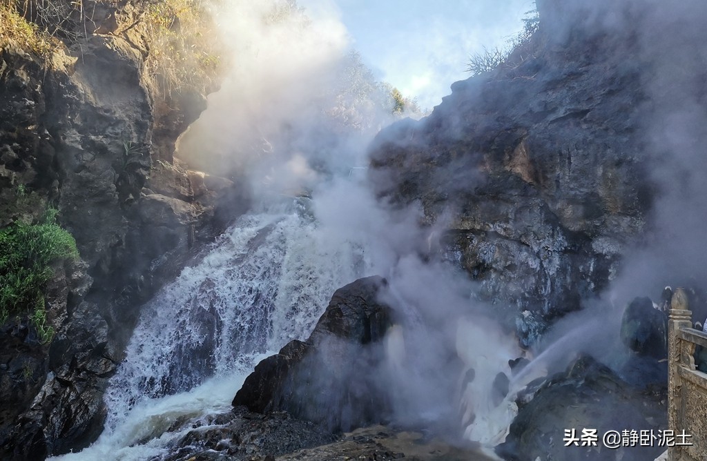 沿着石阶下行,犹如走进一个云雾飘渺的世界,所到之处,白烟滚滚,热气腾腾,很是壮观。