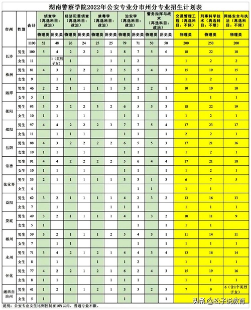 招生计划:2022年在本省一共招收1100个公安专业的考生,其中长沙111名,株洲90名,湘潭51名,衡阳103名,邵阳108名,岳阳98名,常德101名,张家界39名,益阳69名,娄底54名,郴州66名,永州79名,怀化85名,湘西自治州46名。