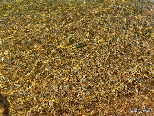 清澈见底的海水,波光中泛着金色的涟漪,太养眼了。