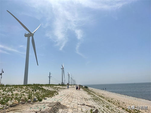 大坝上一排巨大整齐的风电,就像守卫长城的士兵。