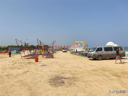 这沙滩上还有很多项目,车子也可以直接开上来,白天下海洗海澡,晚上烤串露营,极佳的所在。