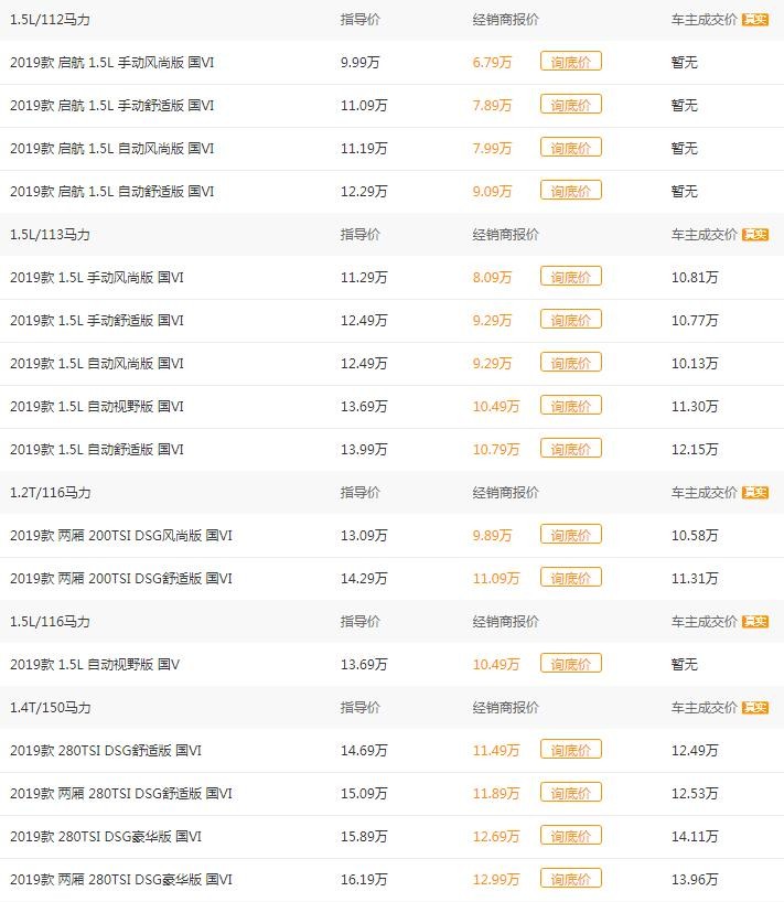 定位为紧凑型轿车,2019款朗逸售价9.99-16.19万元
