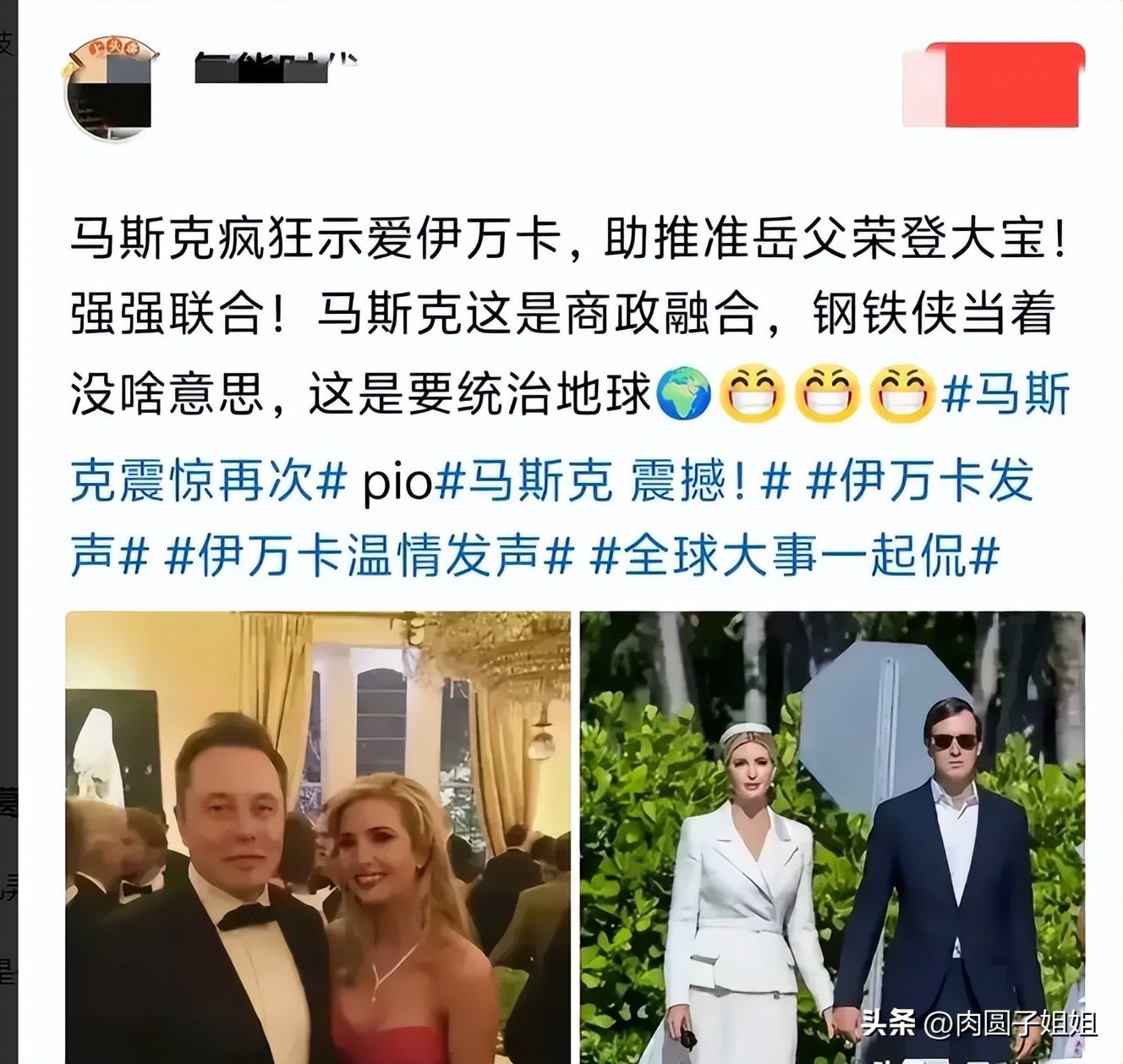 网上传言亿万富翁马斯克疯狂示爱伊万卡!这又是一个啥梗啊?
