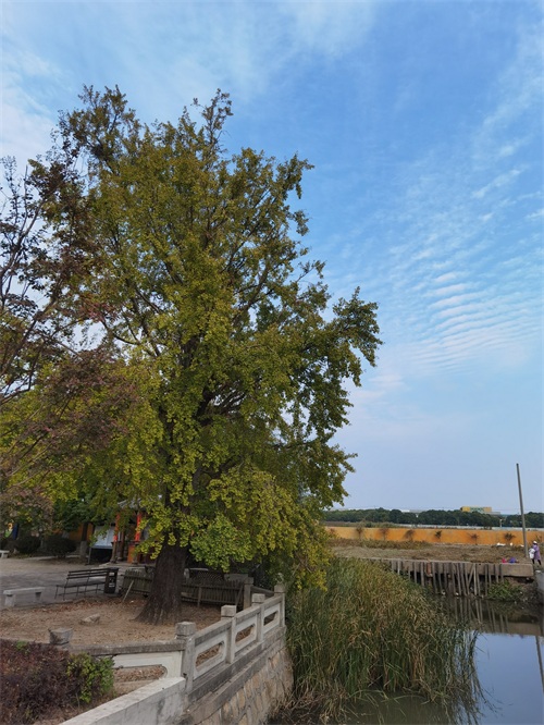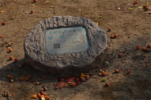 右侧枝叶稀少的银杏树,好像是刚移过来不久。也许是树龄不长,也没有编入古树保护编号里。