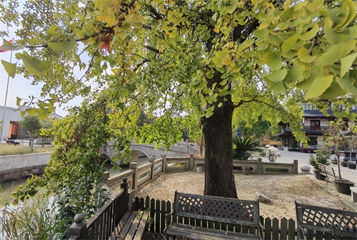 银杏紧邻河浜,天时地利,长势茂盛。