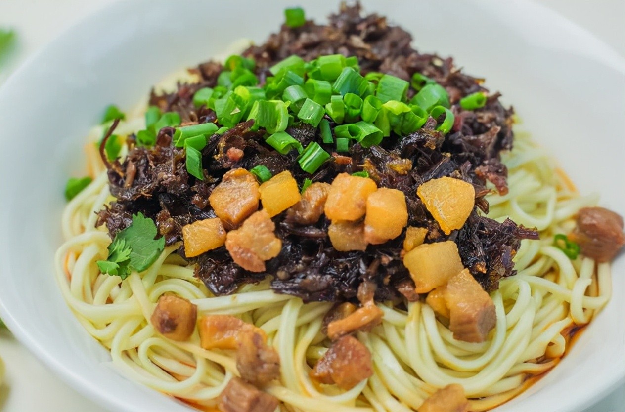 干绍面可以说是四川乐山家喻户晓的一道面食,这道面更注重的是火候和面条的劲道口感,面条不能太粗,也不能太细,吃的时候面条要有嚼劲,还有芽菜和肉的脆香,每根面条都非常的入味,吃完美滋滋的。
