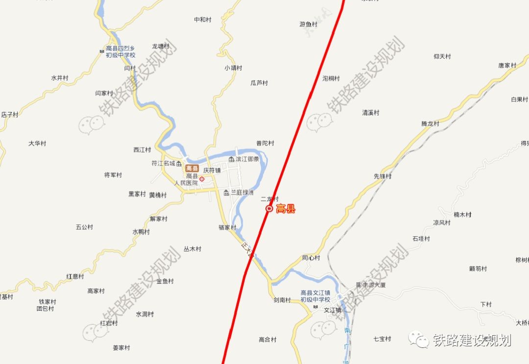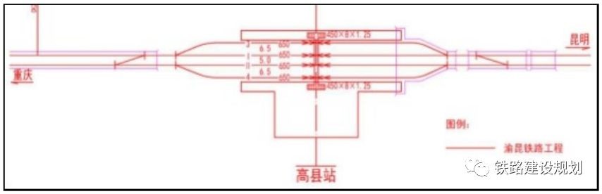 高县站位于县城庆符镇东南侧南广河东岸新油房,设到发线4条(含正线2条)。