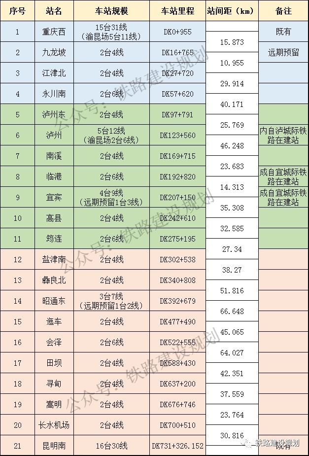 渝昆高铁车站设置一览表▼