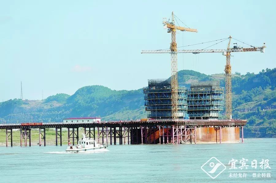 图为临港长江大桥建设一景。(宜宾日报记者 兰锋 摄)