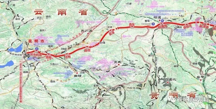 云南段设盐津南、彝良北、昭通东、迤车、会泽、田坝、寻甸、嵩明、长水机场、昆明南10个车站。