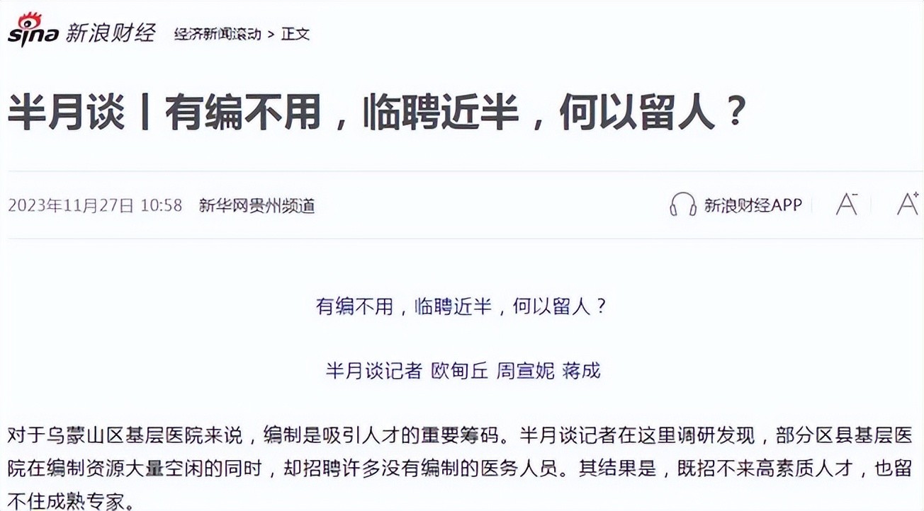 编制对于乌蒙山区基层医院来说,编制是吸引人才的重要筹码。