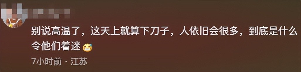 可以看到,这些游客之中有很多家长带着孩子来玩,每个人脸上都红彤彤的,被高温天气晒的汗流浃背!