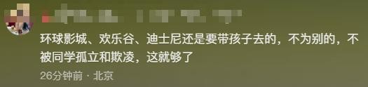 网友说,迪士尼乐园还是要带孩子去的,怕被同学们孤立。