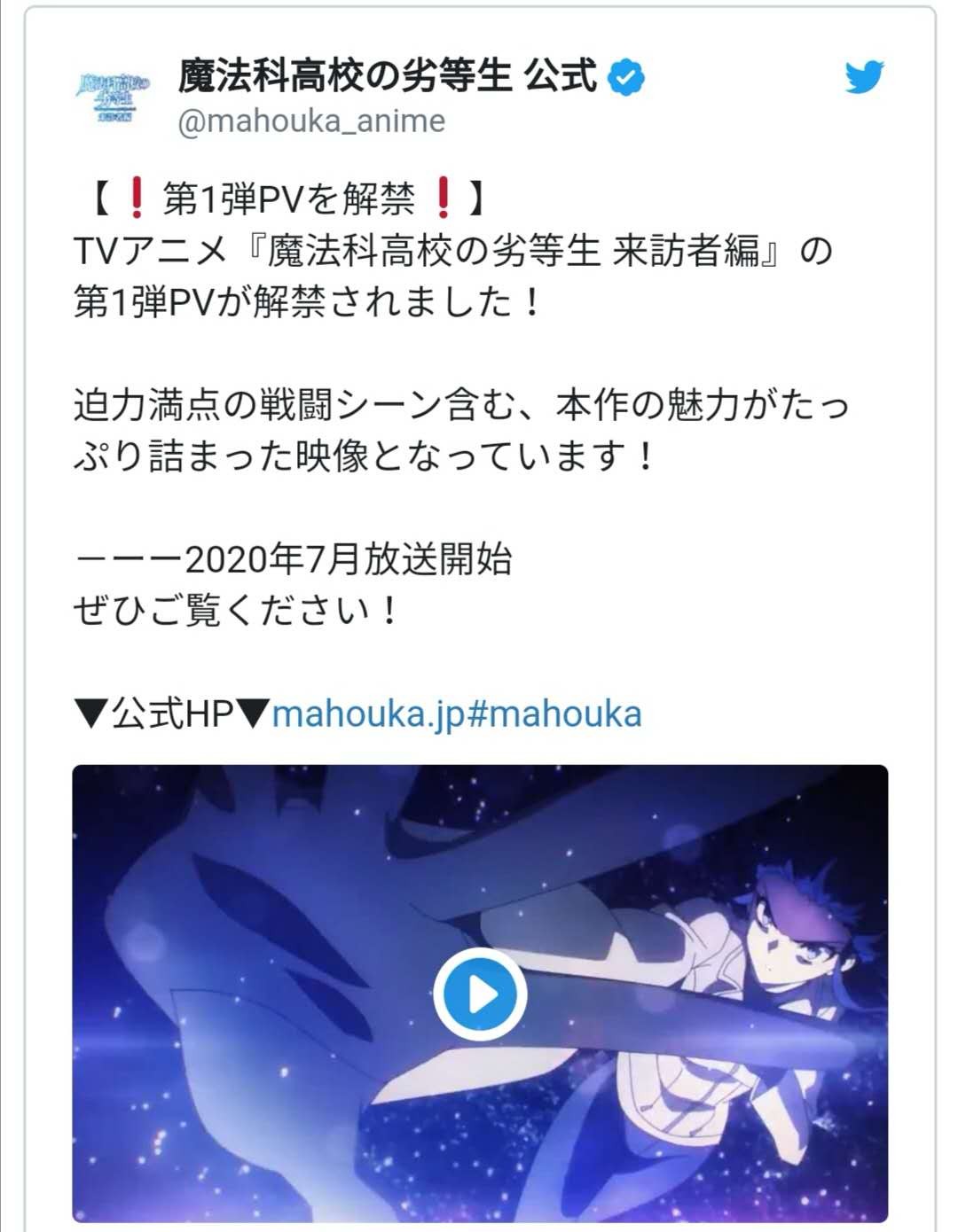 以下是《魔法科高校的劣等生》官方公布了第二季「来访者篇」第一弹预告pv: