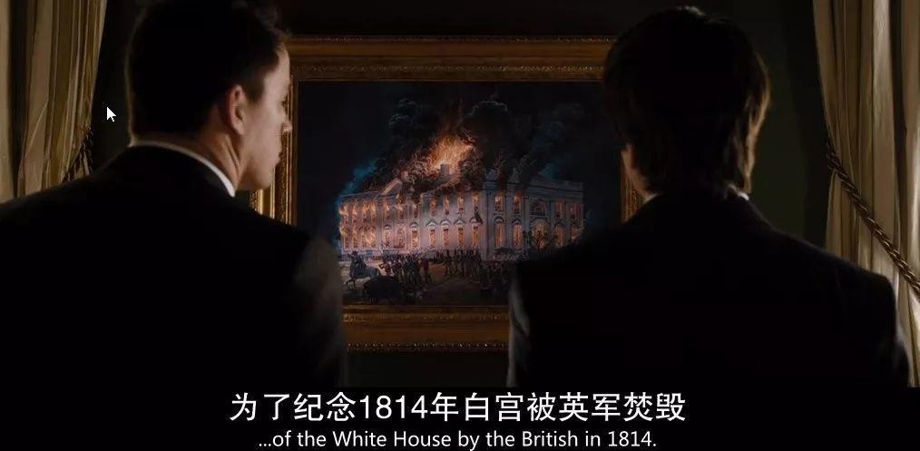 导游跟他介绍挂在墙上的一幅画,1814年白宫被英军焚毁,此后白宫再也没有发生过重大灾难。