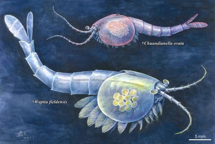 瓦普塔虾科,是一种体长7-8厘米的叶足类节肢动物,与现代海洋甲壳动物的亲缘关系很近。