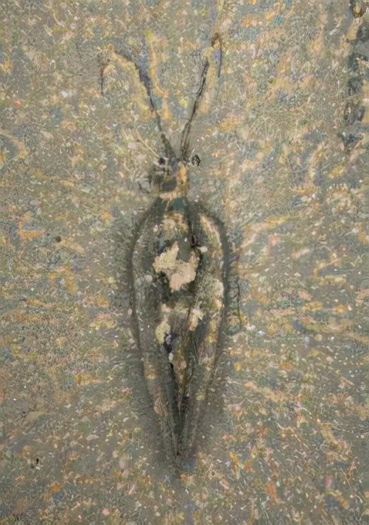 它整体看起来像一只倒扣的盘子,后背由半圆形甲壳覆盖,甲壳非常薄,从侧面看起来略微凸起。