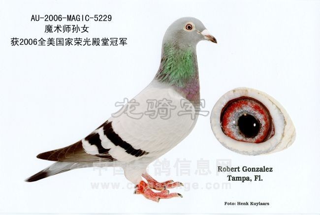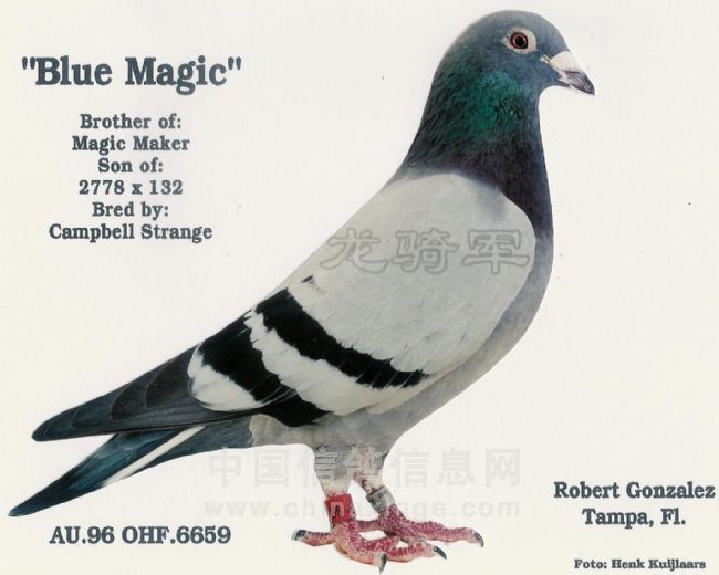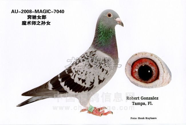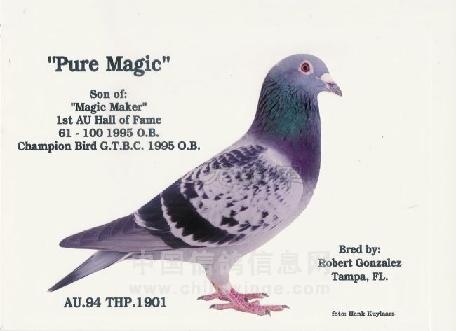 AU 2006 MAGIC 5154 获天柏市联赛2278羽142鸽舍冠军 AU 2005 MAGIC 4143 获天柏市联赛2473羽140鸽舍冠军 AU 2005 MAGIC 4155 获 天柏市联赛2102羽126鸽舍冠军 AU 2003 MAGIC 2066 或 500英里天柏市联赛1117羽91鸽舍参赛的冠军 AU 2008 MAGIC 7667 获 2008年GHC 海湾经典赛全距离多关综合3名 AU 2009 MAGIC 8176 获天柏市600英里当日伯马冠军 同时还获得海湾经典赛指定鸽冠军