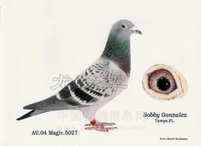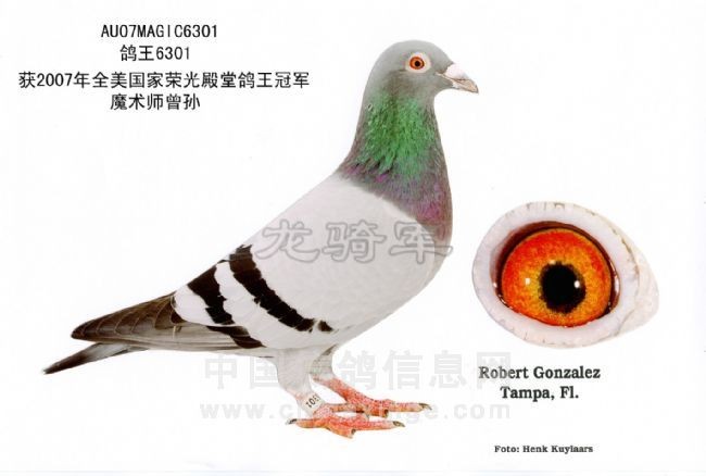 2)詹森血线另一重要黄金种雄98-OHF-9590,“金牌阿瑞斯通纳”,该鸽后裔与超级73凡龙“魔术师”血线搭配成为罗伯特保持赛鸽定向准确、飞翔超速特性的重要手段。如AU 2006 MAGIC 5229获得2006年美国荣光殿堂鸽王冠军、全国幼鸽鸽王4名;4143获得140鸽舍2473羽天柏市联赛总冠军; 2006 MAGIC 5027获得2008 国家评比中距离2名;7029“梅赛德斯先生”梅赛德斯公棚团体冠军成员之一等等。