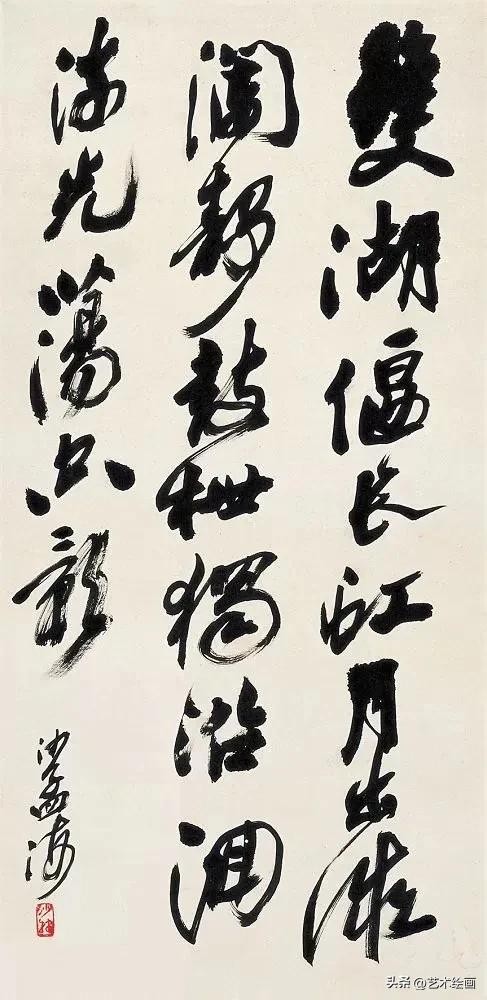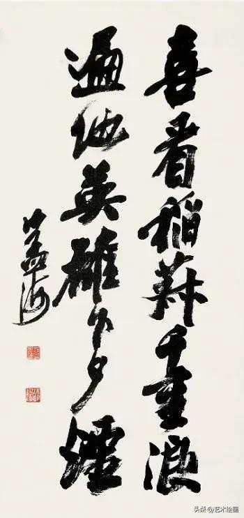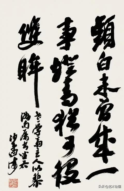 沙孟海最为后世所知与认可的,当数他的榜书。沙孟海“榜书第一”,其大字用笔横扫,出入自如,结体险劲逼仄,构成上点、线、块、面对比强烈,空间感、现代感极强。从欣赏角度来看,沙孟海书法特别重“势”重“力”,这主要表现在他的榜书和摩崖大字上。